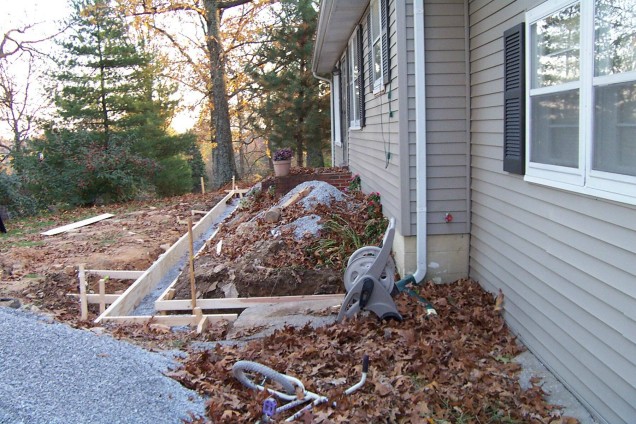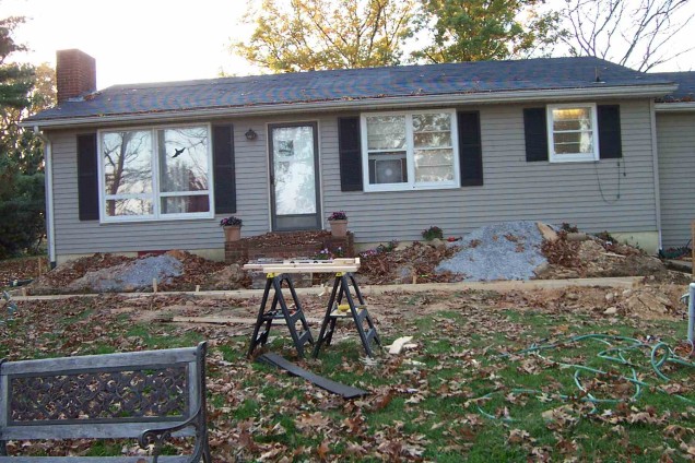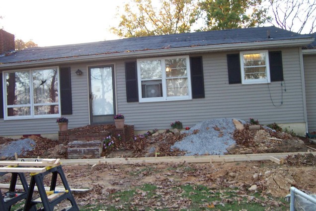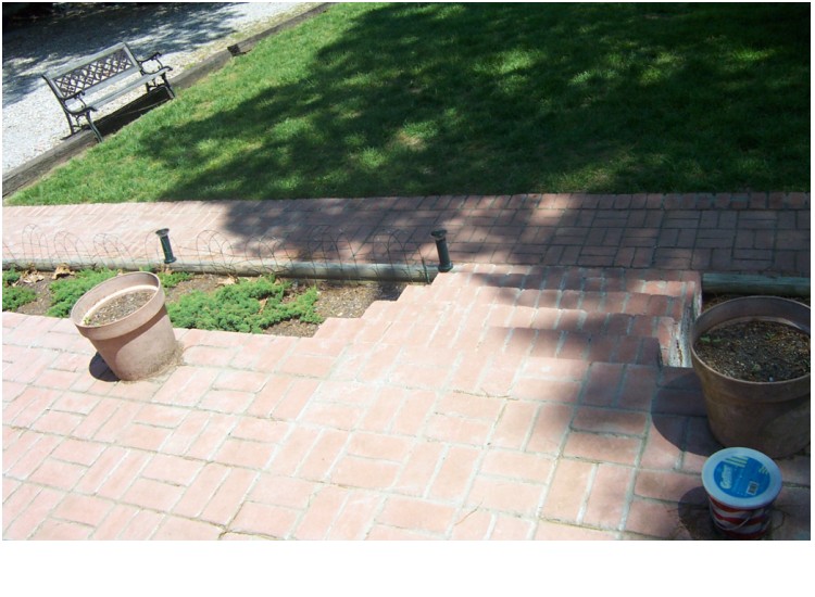 This is the concrete front porch. This looks like brick paver but it is actually concrete that I colored, mixed, poured and molded (with a mold) by hand. The back bedroom did not have ANY attic ventilation in it, so I added a ridge vent and soffit vents to get ventilation to it. Below is the quick project I did to repair it.